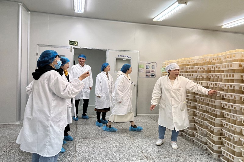 參觀的最后一站——誠志生物廠區(qū)。原料藥車間副主任劉亞會和生產技術部王艷揭開了神秘的原料藥生產和亮菌口服液的生產過程。龐大的反應釜、井然有序的管道、黑暗中熒熒閃耀的菌種、現代化提取工藝,讓講解員們真切的感受到在這里生物與化學、經典與創(chuàng)新、現代與傳統是結合得如此巧妙!